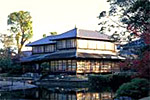 別名濱之茶屋,是舊八代城主松井家3代直之為生母崇芳院尼于元祿元年(1688)建造的茶屋。當時,由於庭院對面可以看到八代海的沙灘和松樹,邸名由此而來。庭園面積約9,000平方米,正門為大名長屋門中的略式門(冠木門)、玄關為唐破風、濱床的造型表明其格式之高。茶屋為2層建築,本屋為茅葺,下屋為柿葺,瀟灑的姿態倒映在池水中。四季不同的鮮花開放,特別是5月到6月燕子花和肥後菖蒲很美麗。