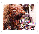 上益城郡山都町市街地一帯,是約有240年歷史的傳統祭典。此祭典據說是1757年(寶曆7年),在擔心矢部鄉收成不好的細川蕃的命令下開始的。精彩之處在於用矢部山野上自生的植物作為材料,各村製作出意趣盎然的巨大造型。有的諷刺世相、有的表達願望,表現生動活潑。各町內得意的造型與伴奏者和著戲服的行列一起遊行,祈願豐收繁榮。在八朔祭典的時候,還進行通潤橋的放水儀式,夜晚有焰火晚會。 |